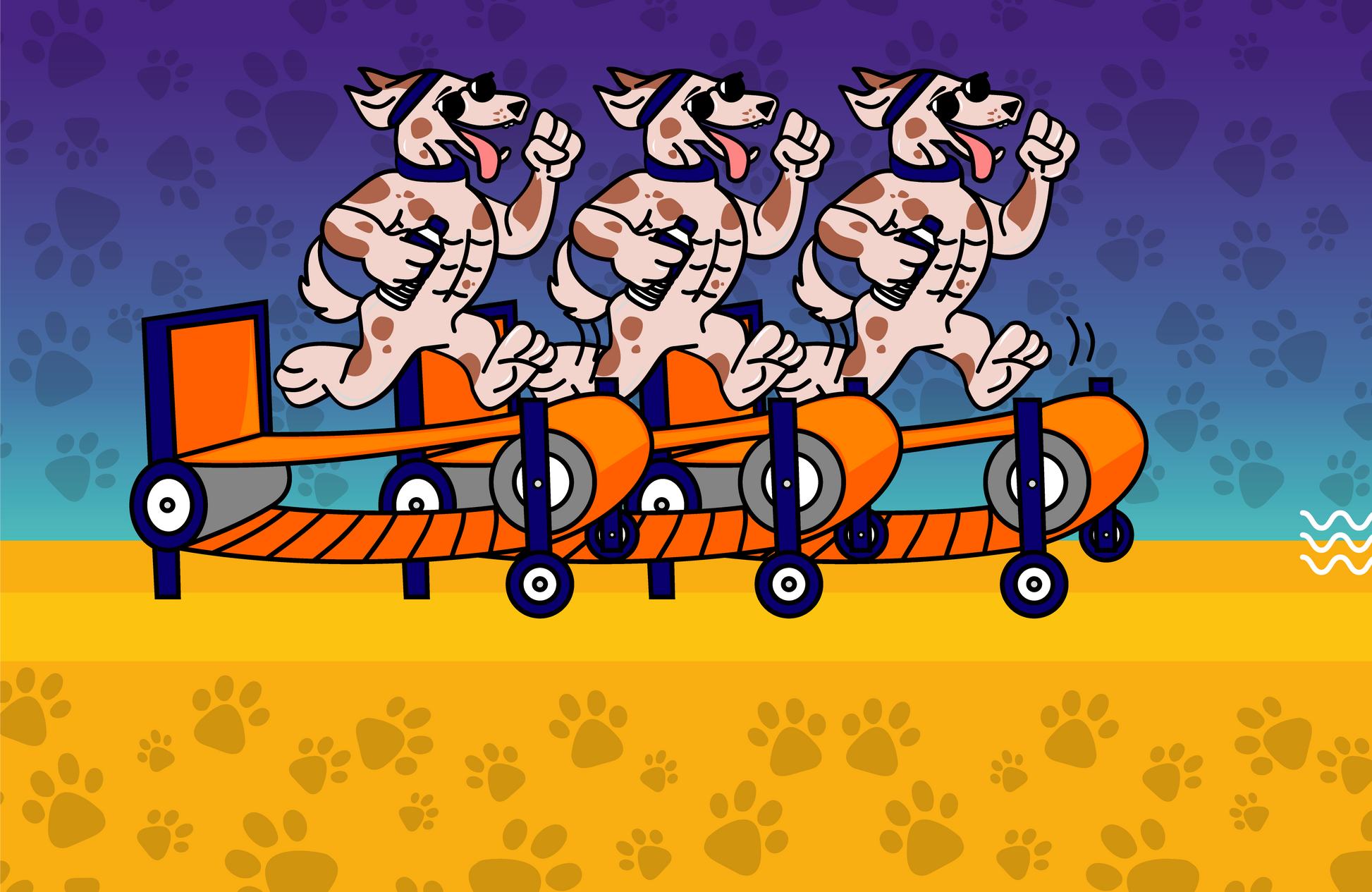 30-minutes for three dogs at the same time. Exercise session includes secure harnessing, exercise on our mobile k-9 treadmills, and cool down. Rest breaks and positive motivation as needed.